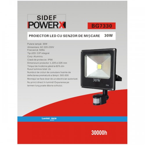 Proiector led PowerX cu senzor 30 W slim, lumina alba rece