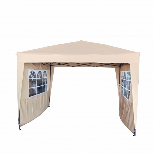 Oferind atat protectie impotriva radiatiilor UV, cat si impotriva precipitatiilor, pavilionul de gradina GAZELA are cadrul din otel vopsit in camp electrostatic, materialul textil fiind impermeabil si doi pereti laterali cu fereastra din pvc, ideal atunci cand iti doresti intimitate.
